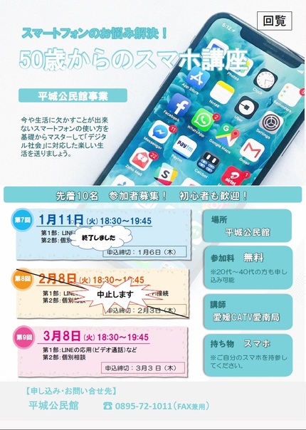 50歳からのスマホ講座 (令和3年4月~7月/令和4年1月~3月) (注)事業は終了しました