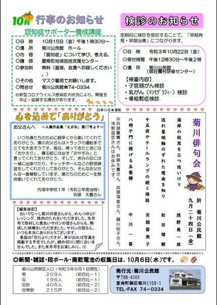 菊川公民館では毎月、公民館だよりを発行しています。以下からご覧ください。