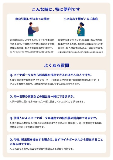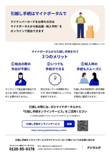 マイナンバーカードをお持ちの方は、マイナポータルから転出届をオンラインで提出できるようになりました。